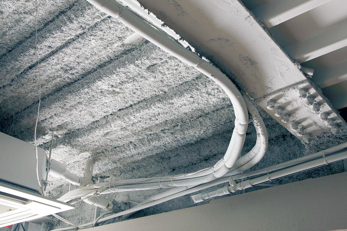 鉄骨造のビルや工場、一般家庭などに幅広く使われていました。また学校の音楽室の防音材や自動車のブレーキ・クラッチなどの摩擦材、配管や機械などの断熱材などにも使用されていました。